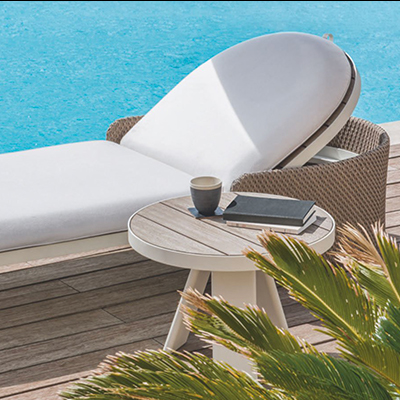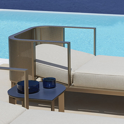 Perforatiile din spatarul din aluminiu al sezlongului Solanas de la Gandia Blasco dau acestei piese perfect contemporane un vag aer retro, amintind paiul de Viena si trimitand cu gandul la Deauville, statiunea normanda atat de la moda in interbelic. Pernele foarte groase, din spuma poliuretanica imbracata in cauciuc si intr-o husa din material textil impermeabil ii confera un nivel de confort inedit pentru un sezlong outdoor.