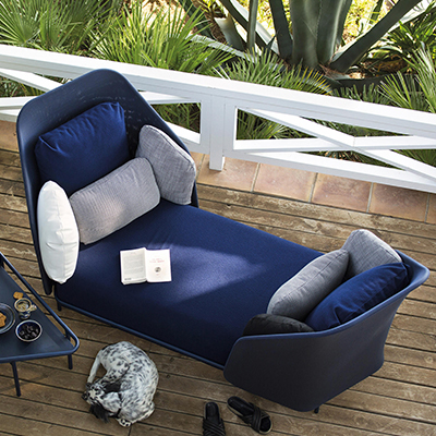 Stilul francez, cu forme surprinzătoare, spirit ludic și culori acidulate, este evident în acest divan outdoor modular, care se poate combina cu diverse alte piese din aceeasi colectie pentru aranjamente spectaculoase. O piesa care aduce un strop de fantezie si joie de vivre in aer liber, cu un look foarte diferit fata de minimalismul italian sau de gustul clasic cultivat de brandurile anglo- saxone. Très chic!