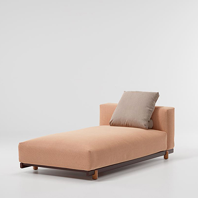Trasatura stilistica distinctiva a acestui sezlong este spatarul semicircular, care aminteste o exedra, element arhitectonic al conversatiei si intalnirii cu ceilalti prin excelenta. Fidele numelui, toate piesele din colectia aceasta au intr-adevar ceva foarte primitor, sunt o invitatie deschisa la rasfat, manifestata estetic la nivelul sezlongului prin absenta oricaror unghiuri drepte sau linii ascutite. Soft este cuvantul care iti vine imediat in minte.