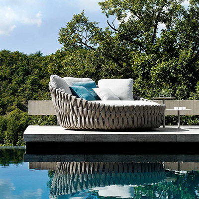 Incepem lista cu un divan foarte original, creatie a superstarului Paola Navone, care pare ca si-a cautat inspiratia pentru gama Rafael pe o plaja pustie intr-un paradis exotic. Neglijenta cu aer rustic este simulata doar, sipcile din lemn de tec si pernele tapitate cu materiale tehnologice de cea mai buna calitate, cu imprimeuri sic, fiind lucrate impecabil, la un standard de calitate si confort pe care numai un brand premium cum este Ethimo il poate oferi.