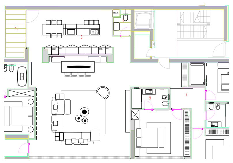 Plansa tehnica 2D pentru dispunerea mobilierului in spatiu: